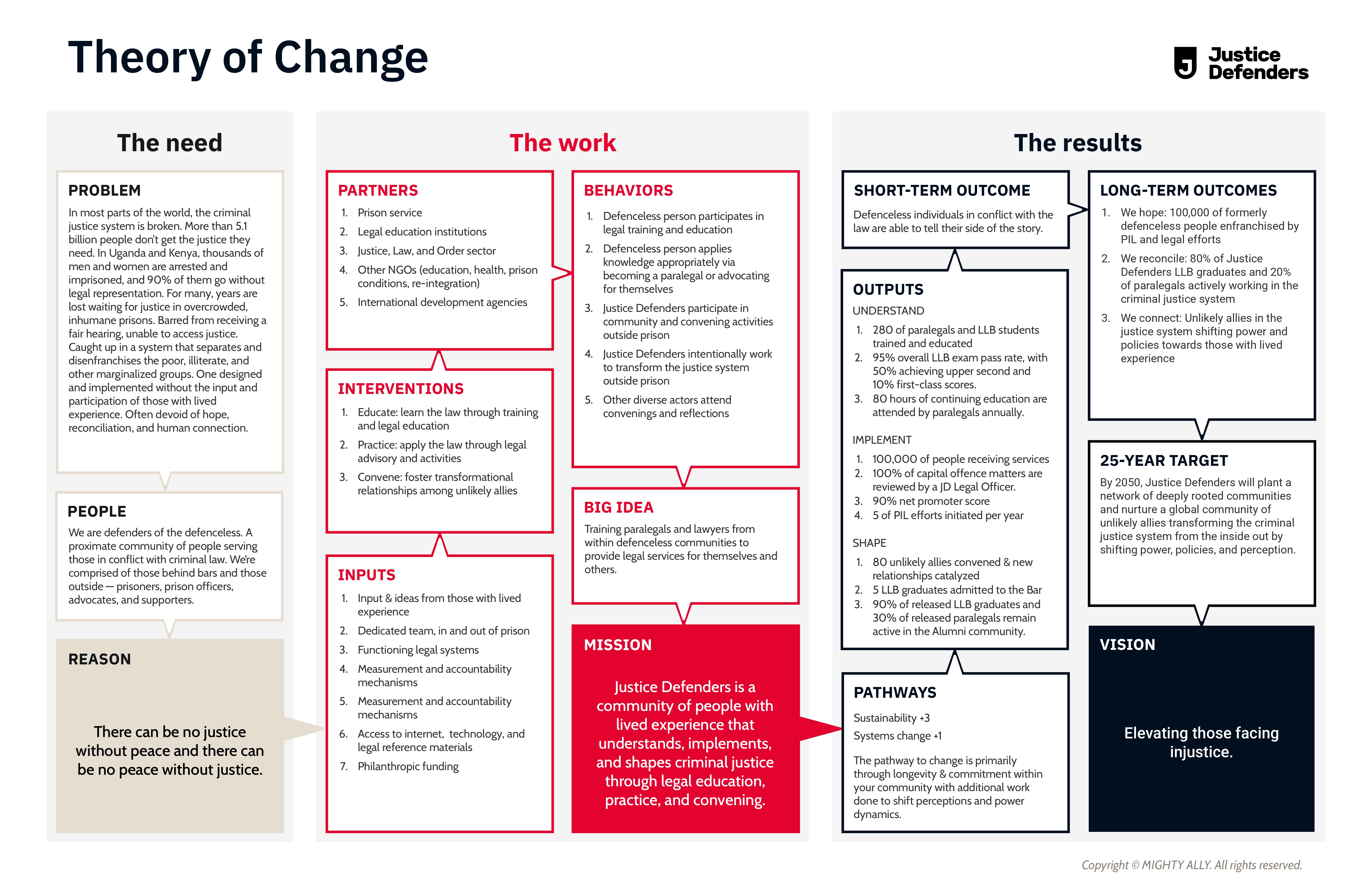 We're a charitable movement, working towards a posture of radical inclusion to ensure the defenceless become the defenders. Our model intentionally includes those who would consider themselves – or may be considered by others – to be marginalised or in conflict with the law. Some defenders were previously attackers. This means training individuals in unlikely places. Justice defenders live in prisons and palaces; they come from death row and Davos. And if these defenders can be unleashed within the justice system, they can serve the community and strengthen the system, helping ensure a fair hearing for all.
